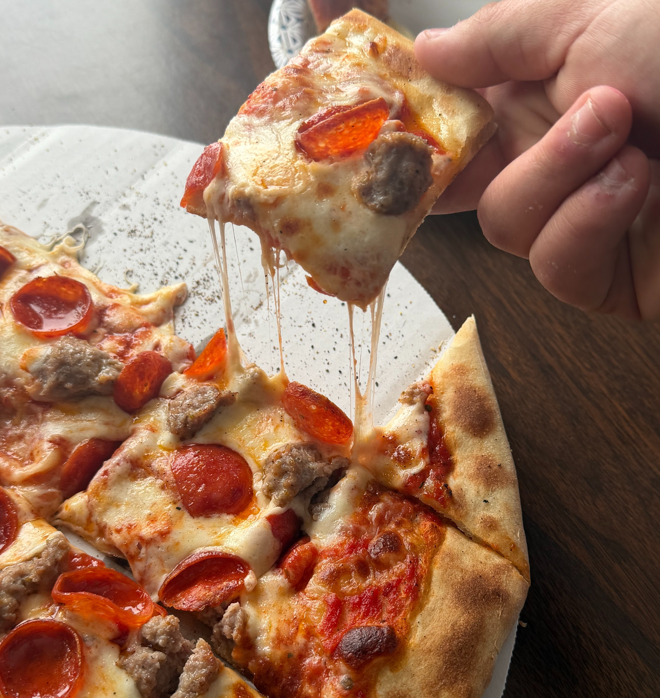 Roasted red peppers, mushrooms, red onion, olives, mozzarella, and Pepperoncini rings